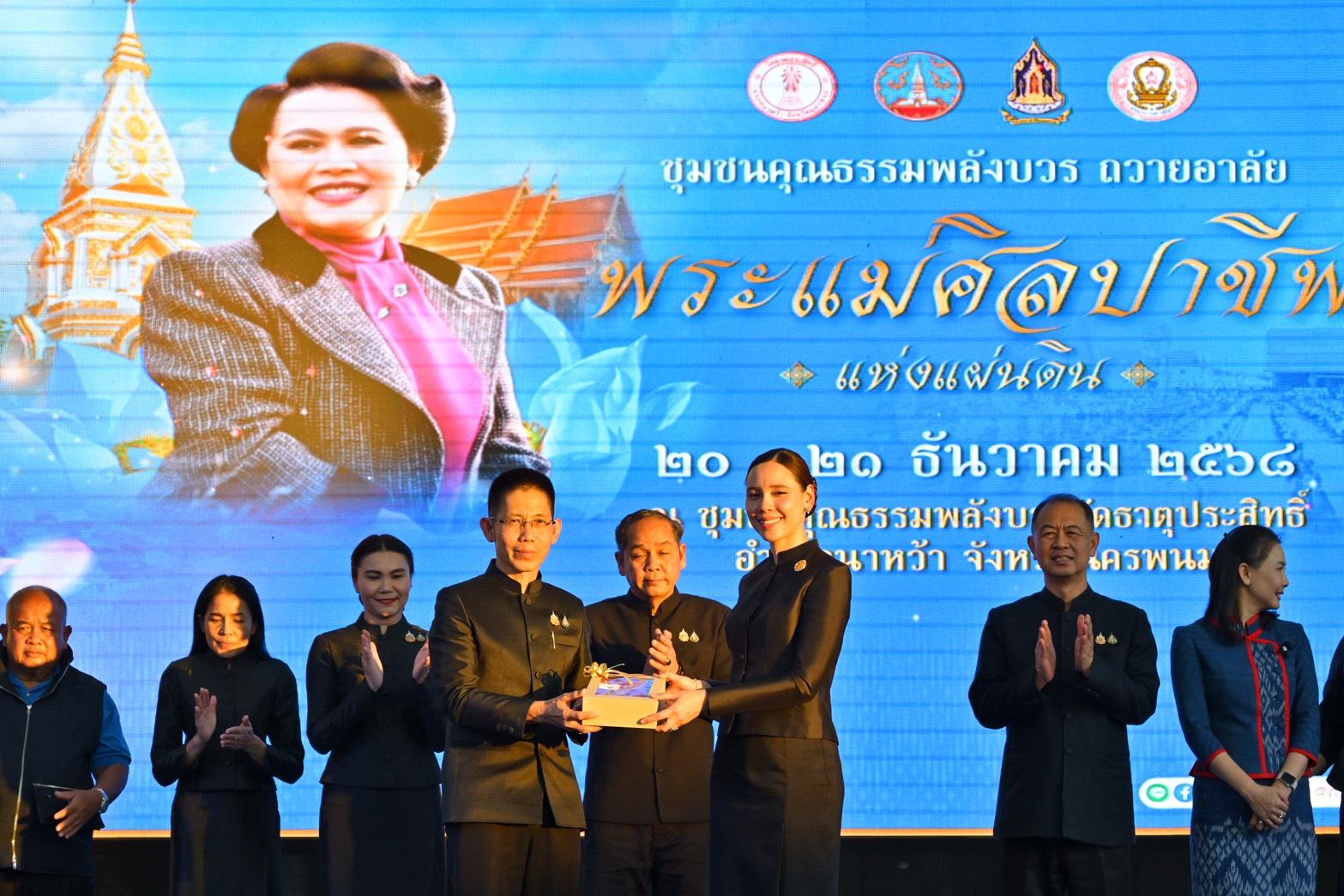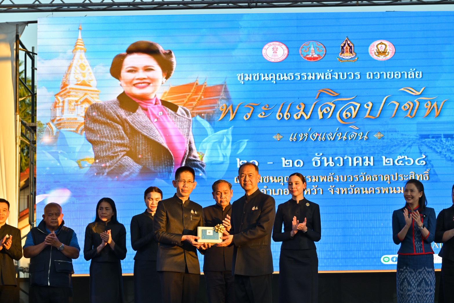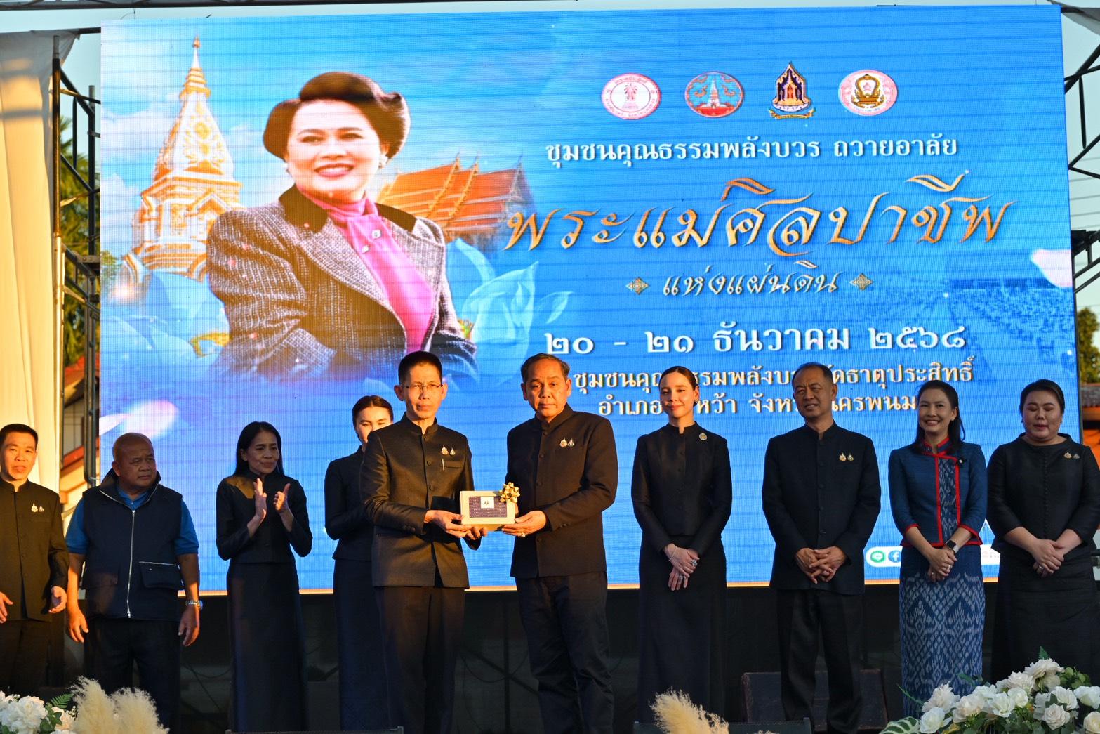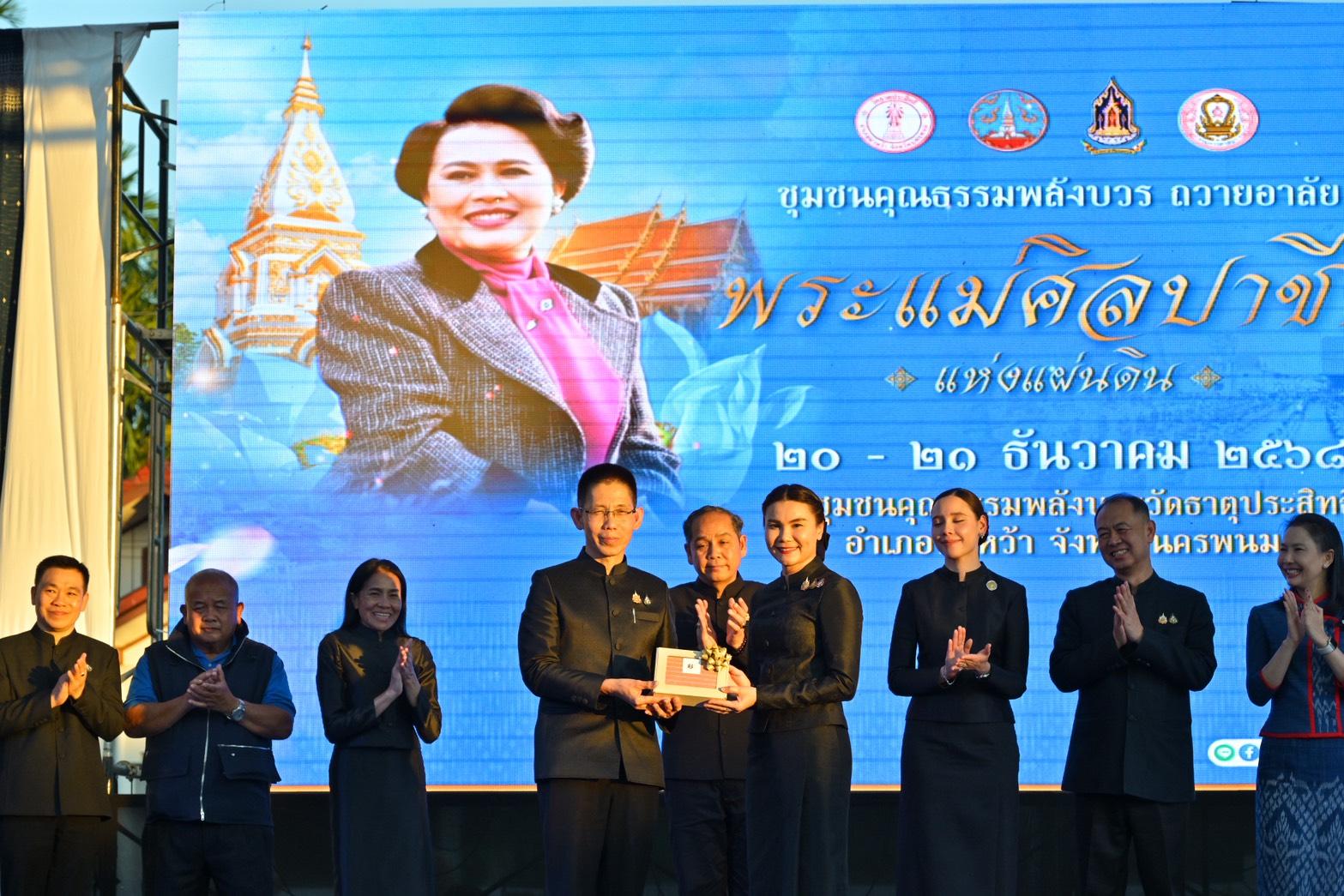 ที่ชุมชนคุณธรรมพลังบวรวัดธาตุประสิทธิ์ อำเภอนาหว้า จังหวัดนครพนม โดยพระราชสิริวัฒน์ เจ้าอาวาสวัดสว่างสุวรรณาราม เจ้าคณะจังหวัดนครพนม เป็นประธานฝ่ายสงฆ์ และนางสาวซาบีดา ไทยเศรษฐ์ รัฐมนตรีว่าการกระทรวงวัฒนธรรม เป็นประธานฝ่ายฆราวาส ในพิธีเปิดงาน “ชุมชนคุณธรรมพลังบวร ถวายอาลัย พระแม่ศิลปาชีพแห่งแผ่นดิน” โดยมี นายประสพ เรียงเงิน ปลัดกระทรวงวัฒนธรรม นายชัยพล สุขเอี่ยม อธิบดีกรมการศาสนา นายวีระ ฤกษ์วาณิชย์กุล รองผู้ว่าราชการจังหวัดนครพนม นางสาวศุภพานี โพธิ์สุ เลขานุการรัฐมนตรีว่าการกระทรวงวัฒนธรรม นางสาวเพชรรัตน์ สายทอง หัวหน้าผู้ตรวจราชการกระทรวงวัฒนธรรม พร้อมด้วยผู้แทนหน่วยงานภาครัฐ ภาคเอกชน สื่อมวลชน และประชาชน เข้าร่วมกิจกรรมอย่างพร้อมเพรียง
