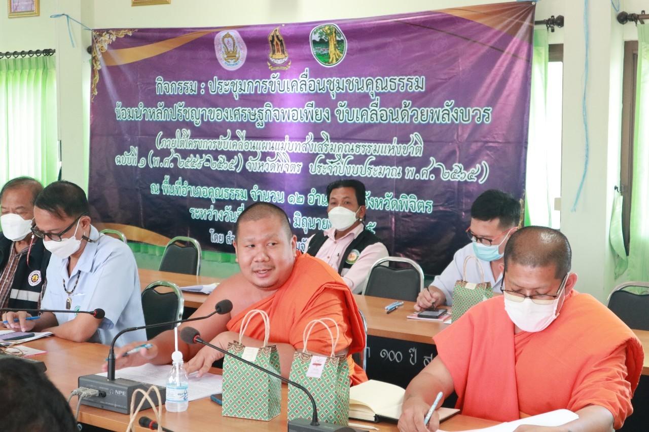 วันพฤหัสบดีที่ ๒๓ มิถุนายน ๒๕๖๕ เวลา ๑๓.๓๐ น. นางสาวพรพรรณ กลิ่นเกษร วัฒนธรรมจังหวัดพิจิตร มอบหมายให้นางฐิฏิยา หาญวีรโยธิน ผู้อำนวยการกลุ่มกิจการพิเศษ พร้อมด้วยบุคลากรสำนักงานวัฒนธรรมจังหวัดพิจิตร เข้าร่วมจัดประชุมขับเคลื่อนชุมชนคุณธรรมน้อมนำหลักปรัชญาของเศรษฐกิจพอเพียง ขับเคลื่อนด้วยพลังบวร อำเภอโพทะเล จังหวัดพิจิตร ภายใต้โครงการขับเคลื่อน แผนแม่บทส่งเสริมคุณธรรมแห่งชาติ ฉบับที่ ๑ (พ.ศ. ๒๕๕๙ - ๒๕๖๕) จังหวัดพิจิตร