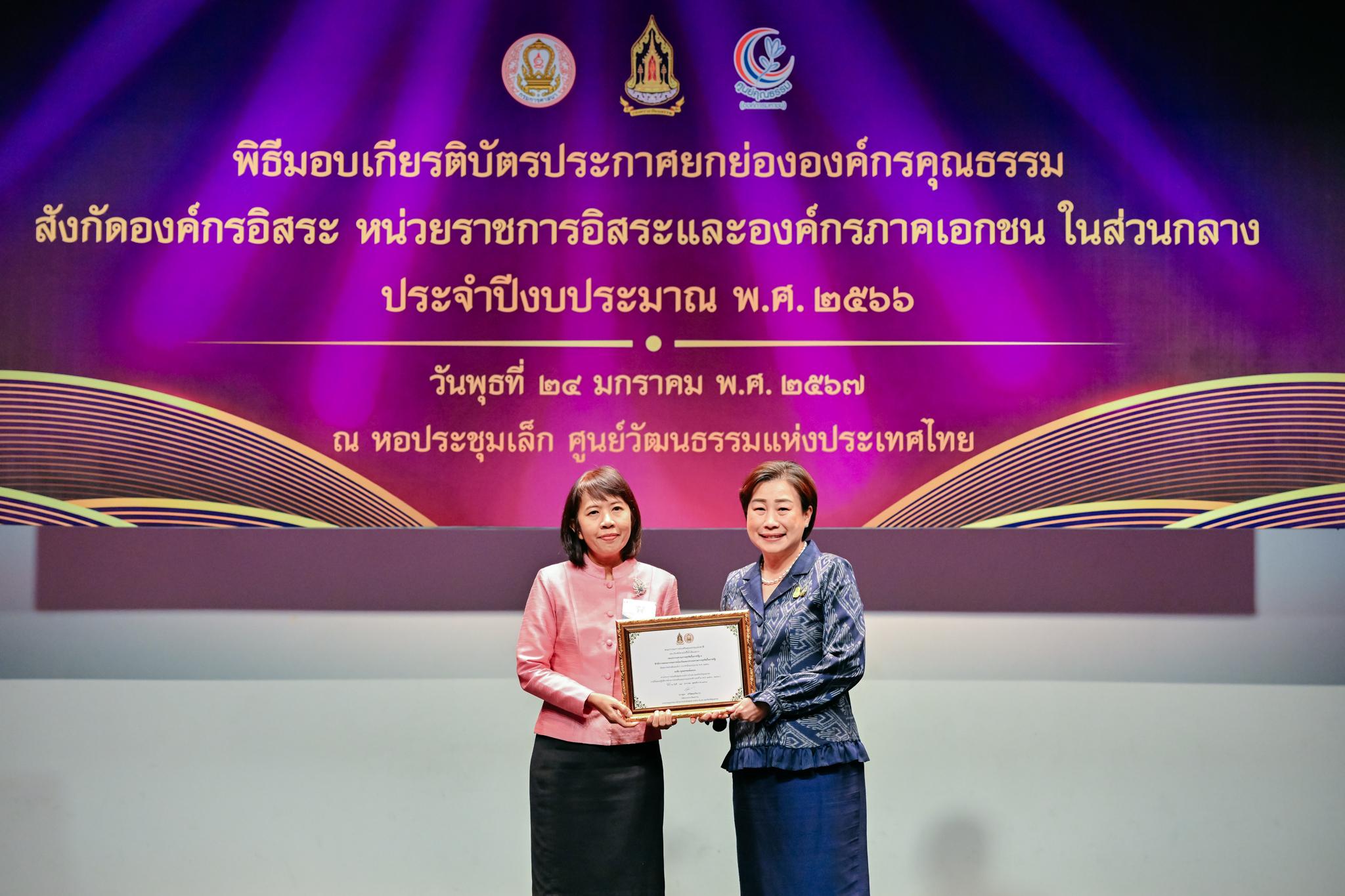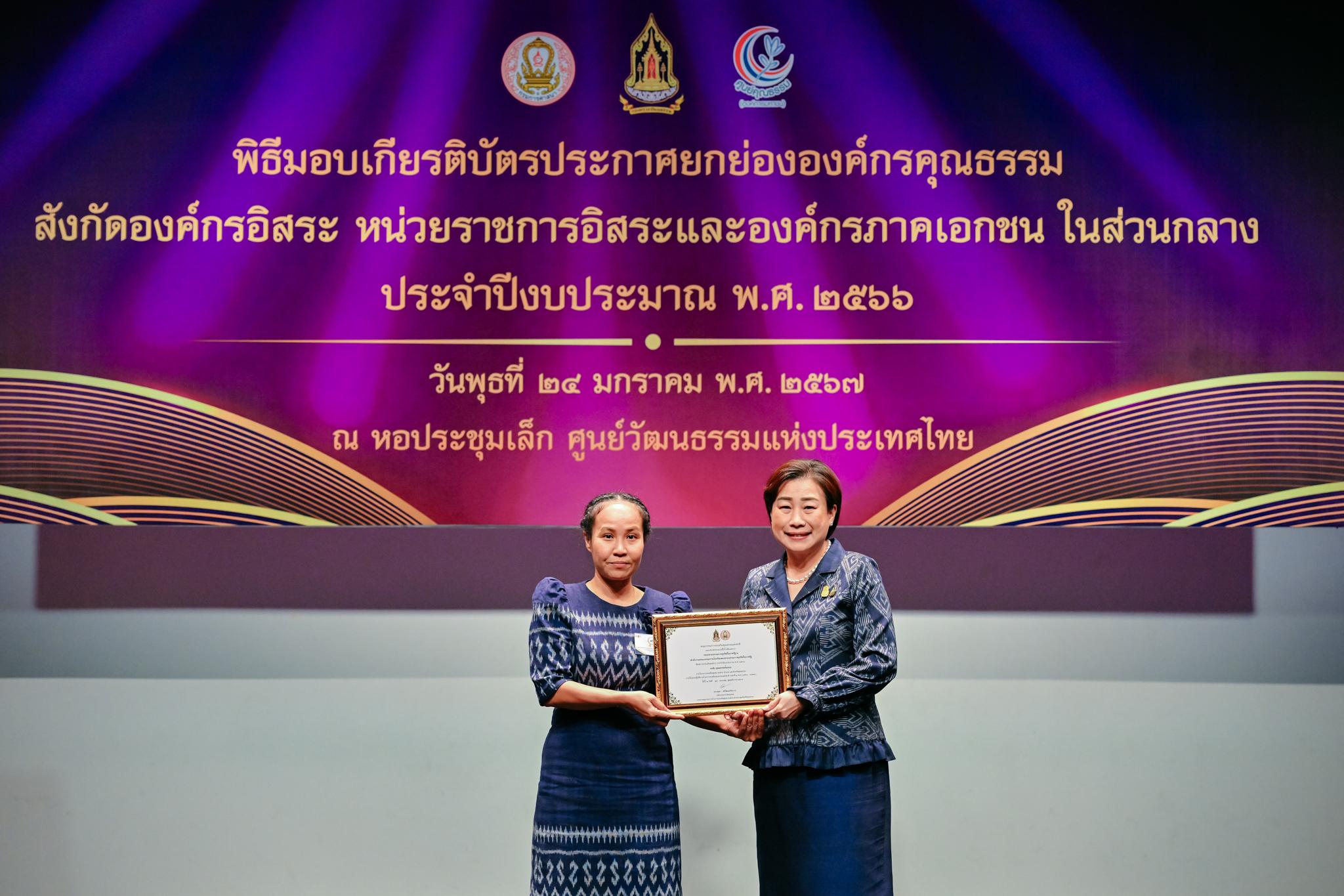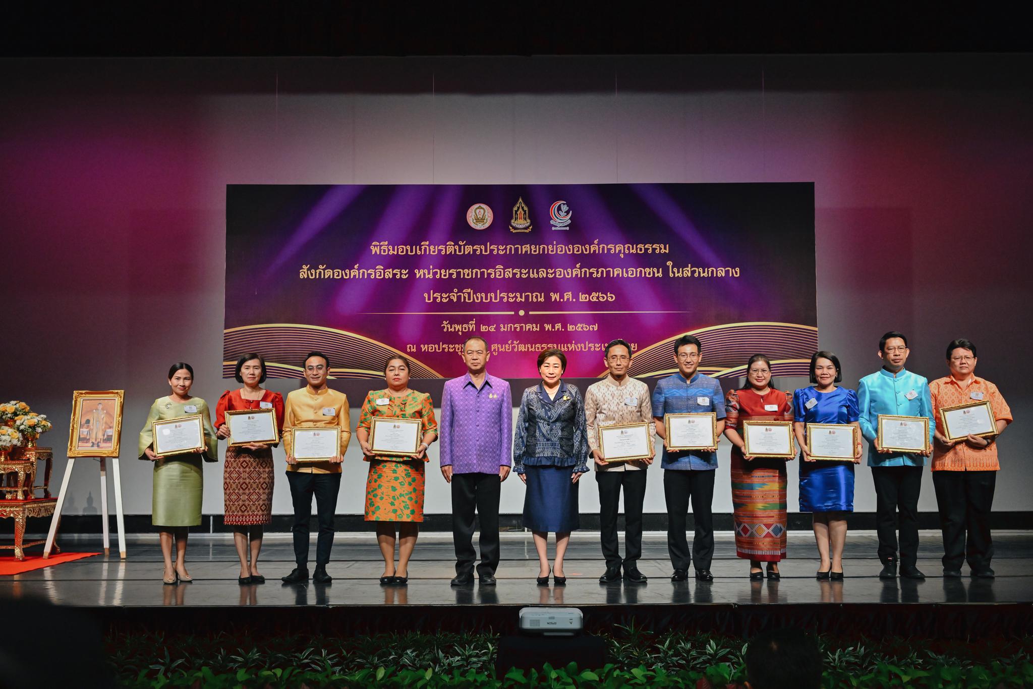 วันพุธที่ ๒๔ มกราคม ๒๕๖๗ นางยุพา ทวีวัฒนะกิจบวร ปลัดกระทรวงวัฒนธรรม ในฐานะประธานอนุกรรมการด้านการประเมินชุมชน องค์กร อำเภอ และจังหวัดคุณธรรม เป็นประธานพิธีมอบเกียรติบัตรประกาศยกย่ององค์กรคุณธรรม ประจำปีงบประมาณ พ.ศ. ๒๕๖๖ สังกัดองค์กรอิสระ หน่วยราชการอิสระและองค์กรภาคเอกชน ในส่วนกลาง โดยมี นายชัยพล สุขเอี่ยม อธิบดีกรมการศาสนา ผู้บริหารกระทรวงวัฒนธรรม คณะอนุกรรมการด้านการประเมินชุมชน องค์กร อำเภอ และจังหวัดคุณธรรม เข้าร่วมพิธี ณ หอประชุมเล็ก ศูนย์วัฒนธรรมแห่งประเทศไทย กรุงเทพมหานคร