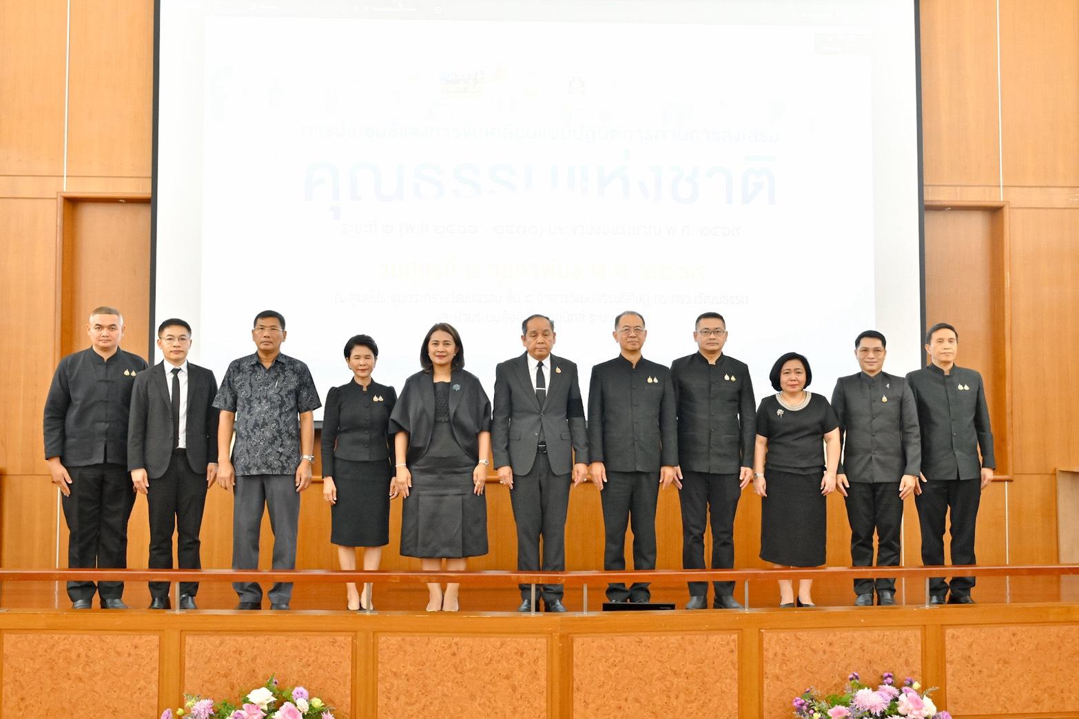 พร้อมกันนี้ ได้มีการชี้แจงสาระสำคัญการประเมิน ชุมชน องค์กร อำเภอ และจังหวัดคุณธรรม ประจำปีงบประมาณ พ.ศ. 2569 ซึ่งเป็นปีแรกของการคัดเลือก “ต้นแบบโดดเด่น” โดยกำหนดหลักเกณฑ์ที่เข้มข้นมากขึ้น อาทิ ผู้นำต้องเป็นแบบอย่างด้านคุณธรรมที่ประจักษ์ หน่วยงานต้องสามารถถ่ายทอดองค์ความรู้และขยายผลสู่สาธารณะได้และต้องมีระบบเครดิตความดีที่เห็นผลการเปลี่ยนแปลงพฤติกรรมอย่างชัดเจน